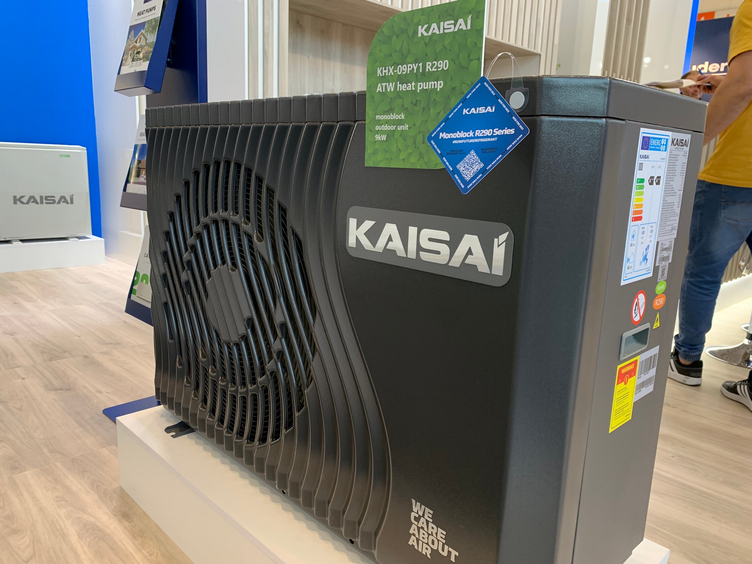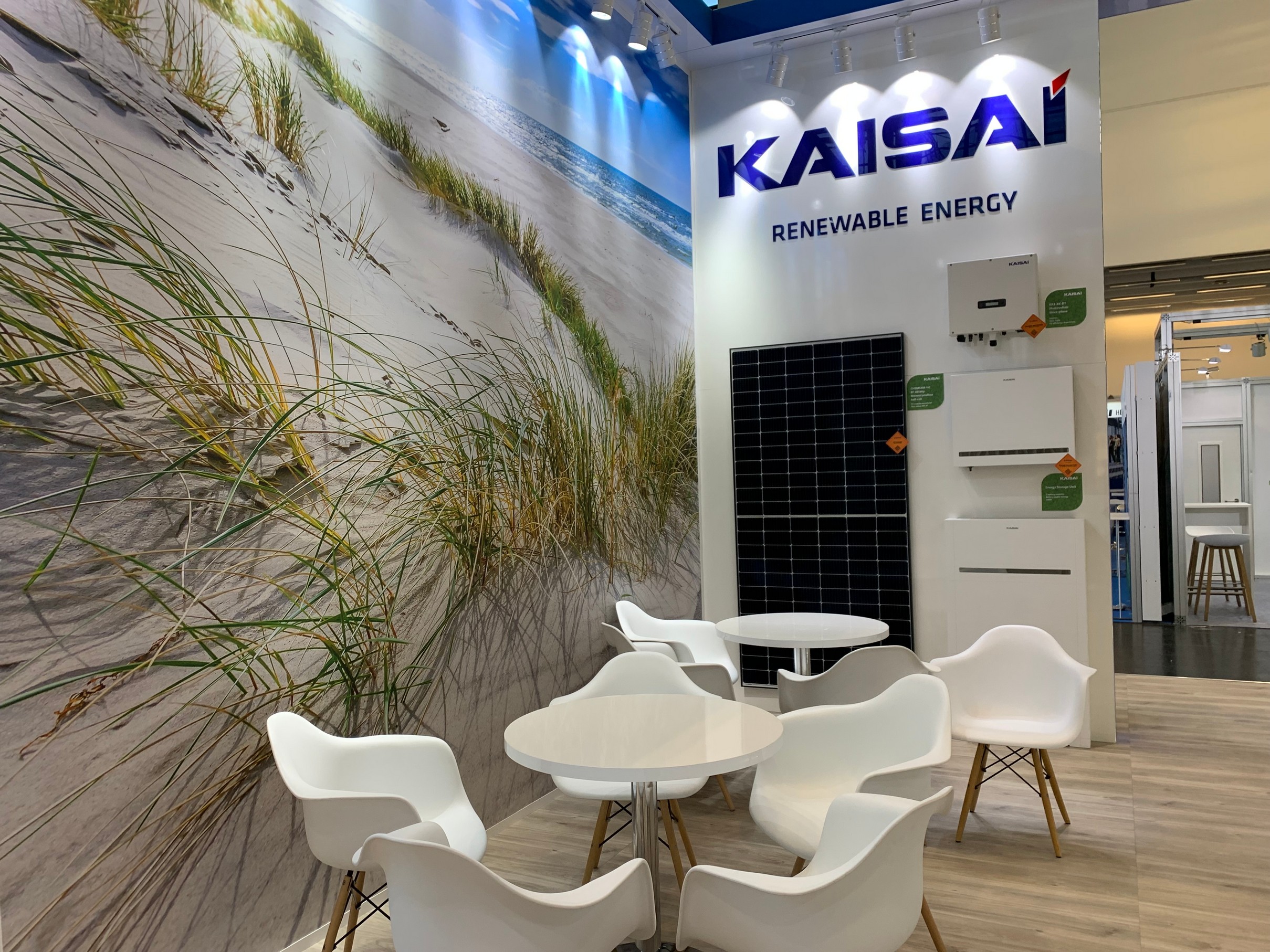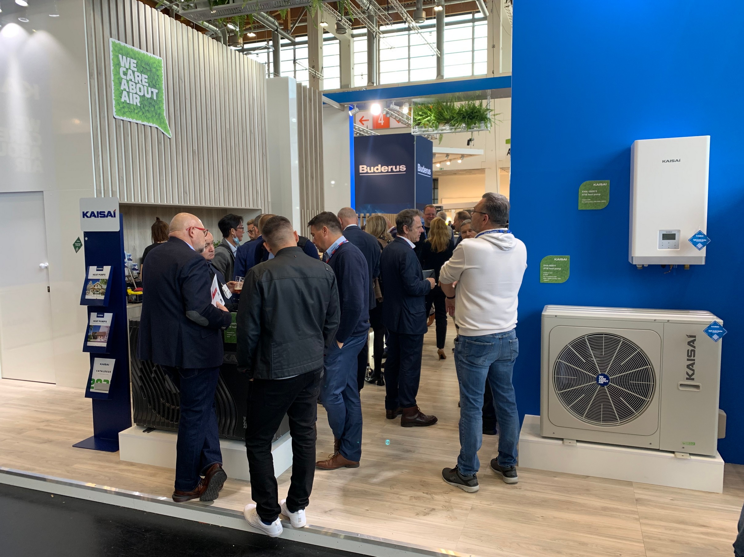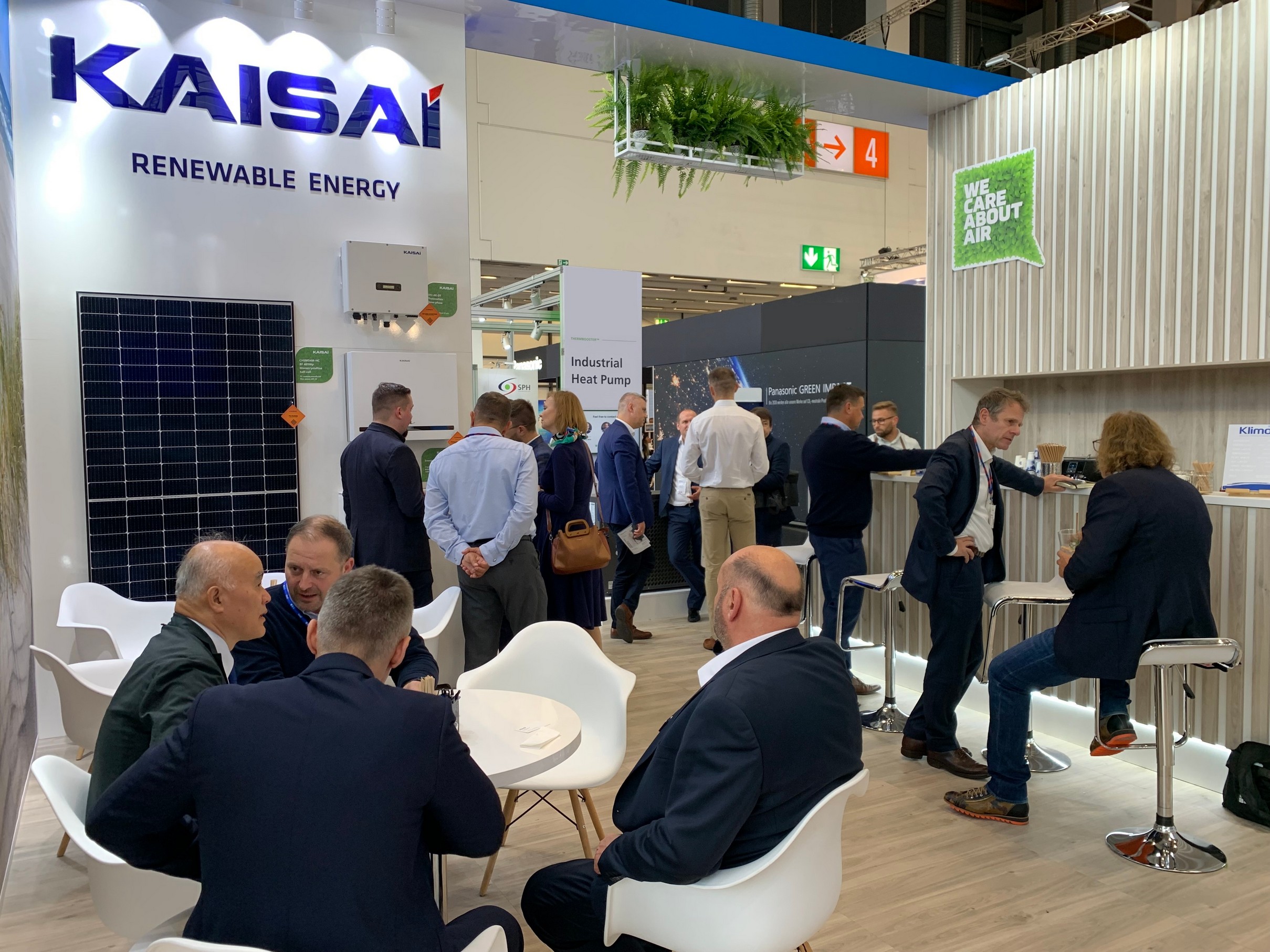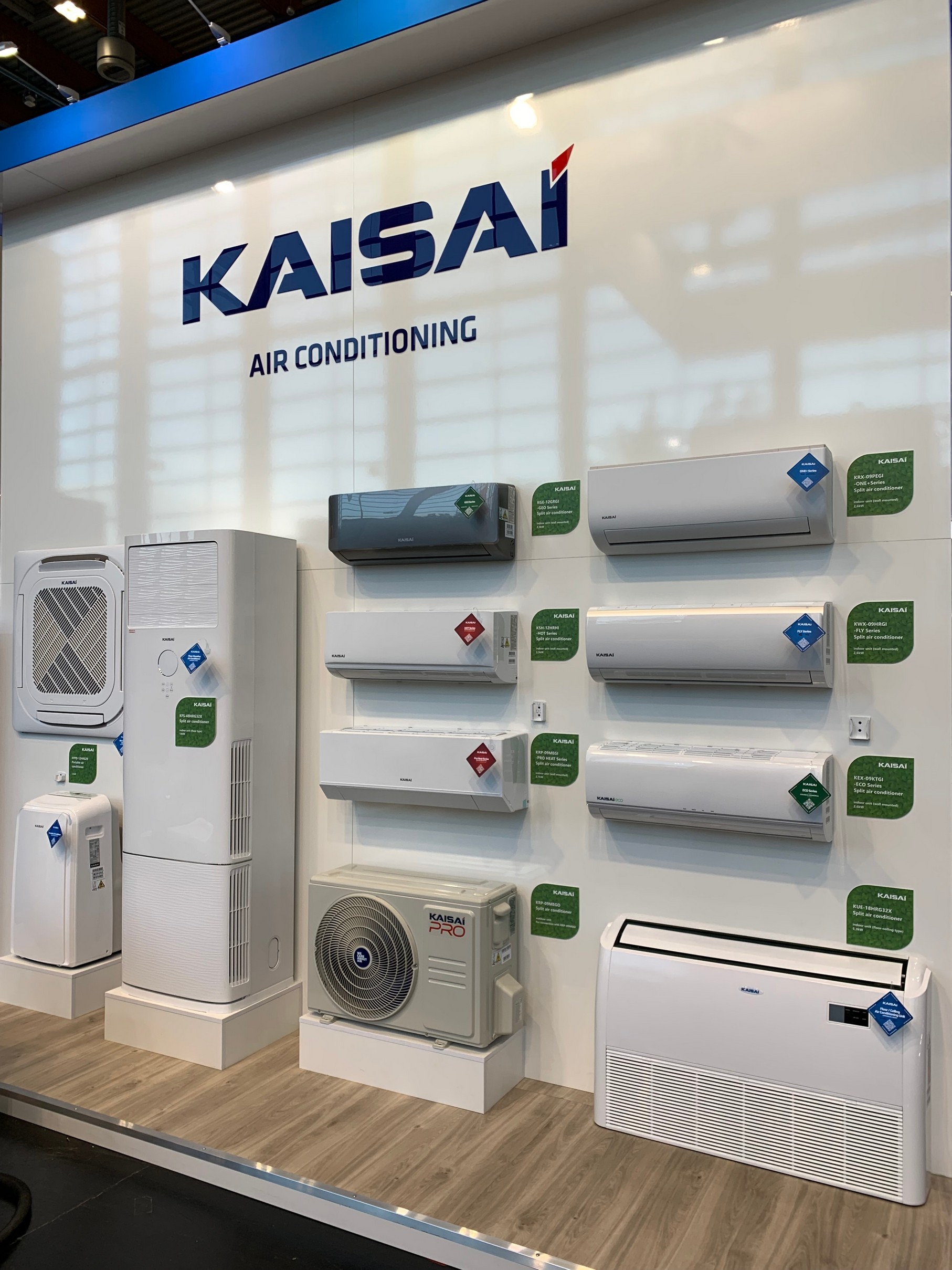 Die Marke KAISAI präsentierte in Nürnberg Lösungen aus dem Segment der Erneuerbaren Energien (RES), angeführt von Luft-Wasser-Split- und Monoblock-Wärmepumpen für das Kältemittel R32 und einem neuen Produkt im Angebot - einer Serie von Monoblock-Wärmepumpen KHX für das natürliche Kältemittel R290, bekannt als Propan. Abgerundet wurde KAISAIs RES-Ausstellung durch PV-Module und Wechselrichter und, als Premiere: Energiespeicher. Zu den Klimatisierungsprodukten aus den Segmenten RAC und LCAC gehörten die Wandgeräte FLY und ECO sowie zahlreiche Neuheiten, die durch die Klimageräte ProHEAT und HOT für die Heizung und die Modelle GEO und ONE+ vertreten waren. Die Ausstellung der KAISAI-Klimageräte wurde durch typische kommerzielle Produkte bereichert: das eigenständige Unterflur-Klimagerät KFS und das Boden-/Deckenmodell KUE.