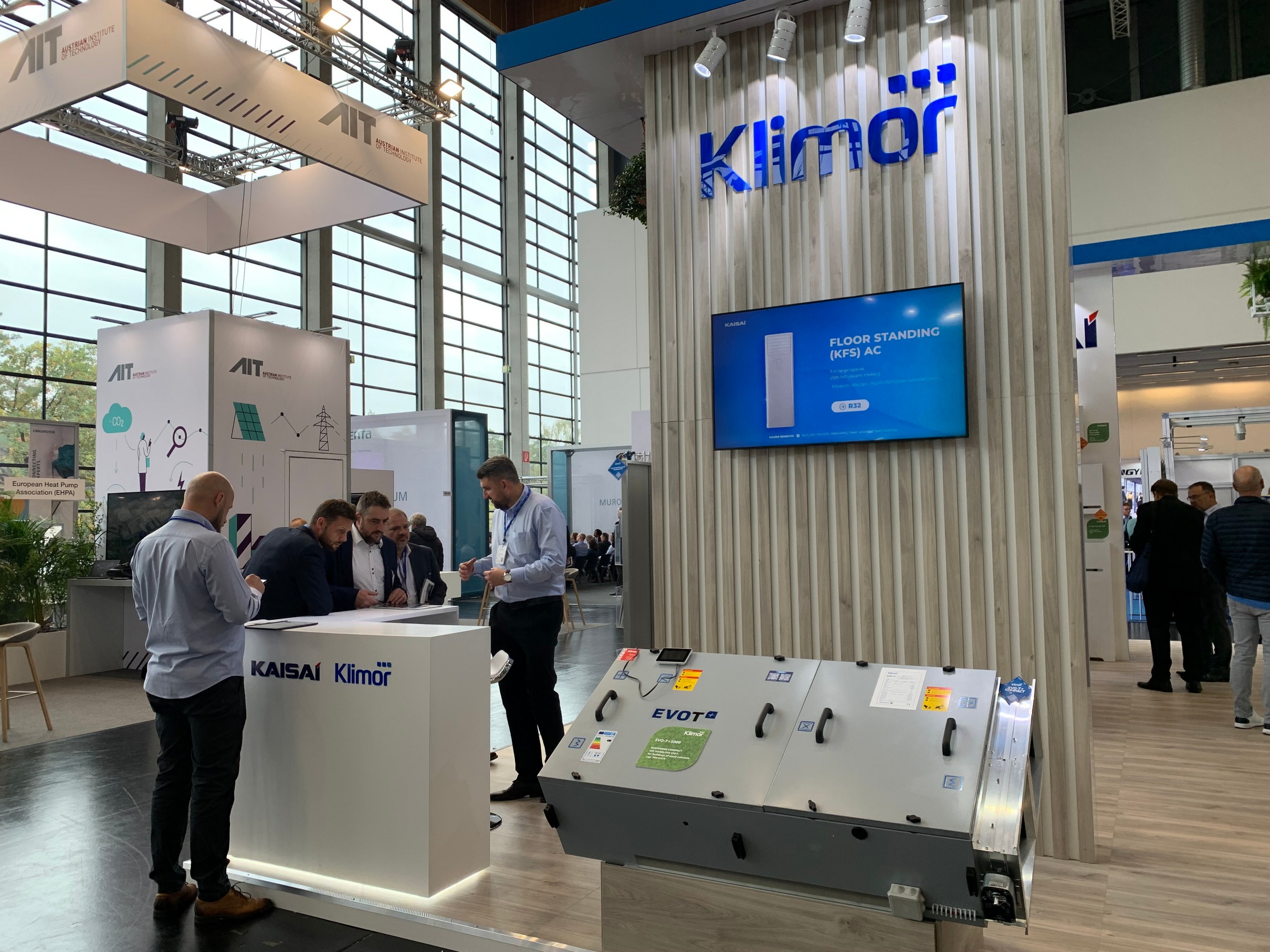 Auf ihrem 100 m² großen Stand in Halle 4A des modernen NürnbergMesse-Komplexes präsentierte die Klima-Therm Gruppe die neuesten Klima-, Lüftungs- und Heizungslösungen ihrer eigenen Marken KAISAI und Klimor.