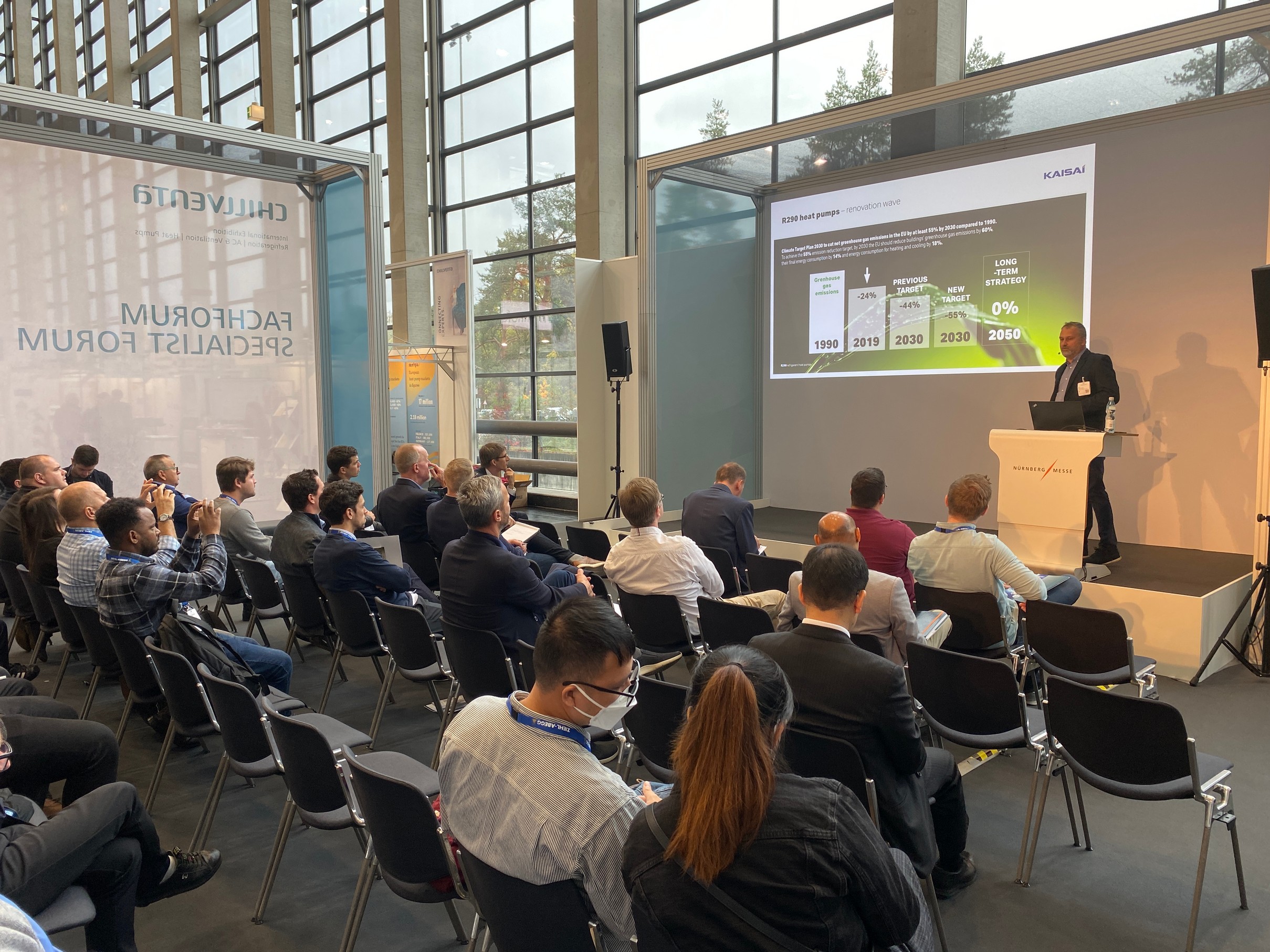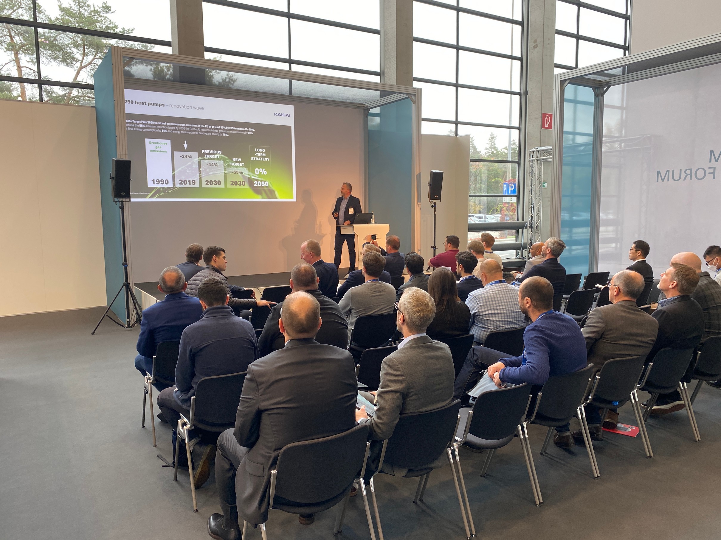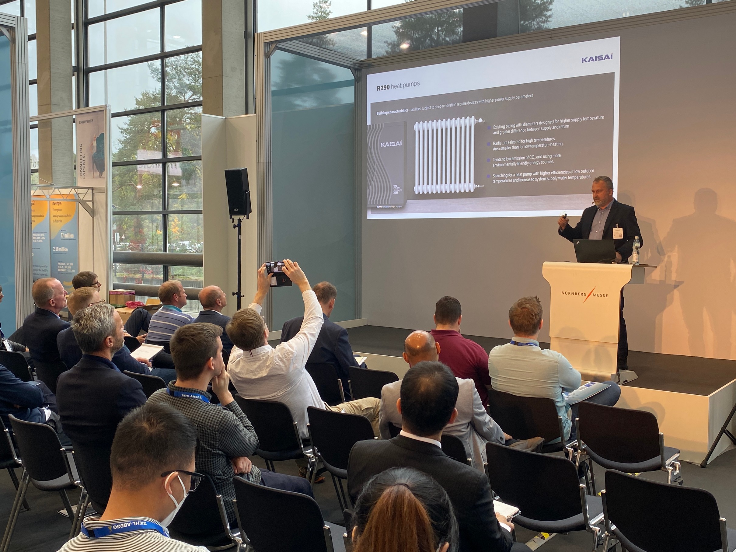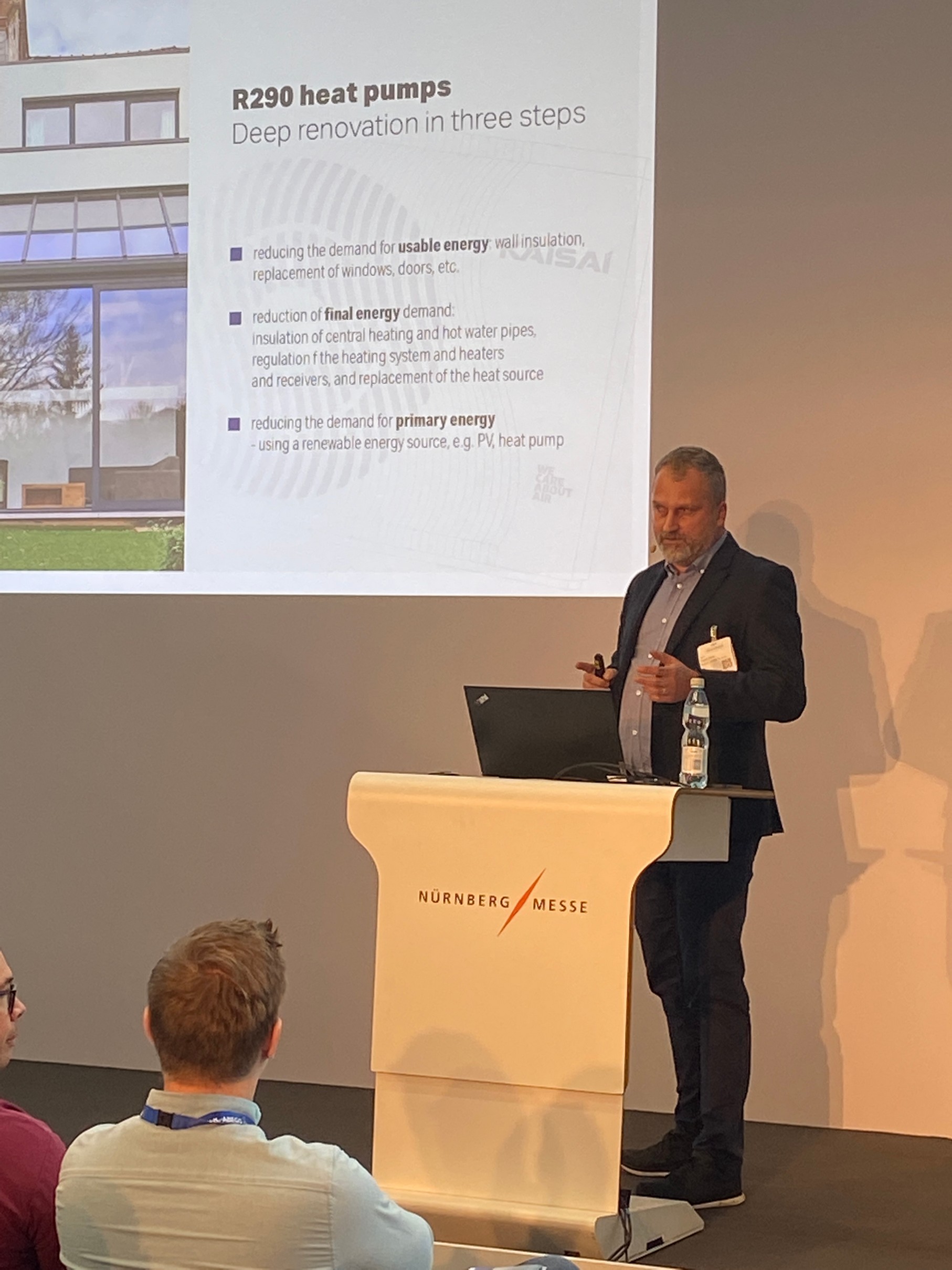 Die Präsenz der Klima-Therm Gruppe auf der CHILLVENTA 2022 wurde durch einen starken inhaltlichen Akzent abgerundet. Im Rahmen des Fachforums hielt Paweł Deska, Technischer Direktor bei Klima-Therm, einen Fachvortrag über Lösungen, die die Modernisierung von Gebäuden im Hinblick auf die Minimierung von Energieverlusten und die Verbesserung der Energieeffizienz unterstützen, wobei der Ersatz von Wärmequellen durch effiziente und emissionsfreie Quellen berücksichtigt wurde. Das Hauptthema des Fachvortrags waren KAISAI-Wärmepumpen mit dem umweltfreundlichen Kältemittel R290, die durch das Prisma der aktuellen Gesetzgebung und der anstehenden Änderungen präsentiert wurden.