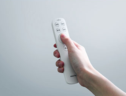 Fujitsu Simple remote controller (X Series) - in pursuit of universal design, the remote features ideally placed buttons for ease of use, and a compact yet simple form. The most commonly used buttons are placed for easy access. Care was also taken over the width of the form factor, ensuring users with smaller hands or reduced grip strength can operate the remote with ease. Additionally, the device uses Bluetooth® so there is no need to point the remote at the air conditioning unit to operate it.