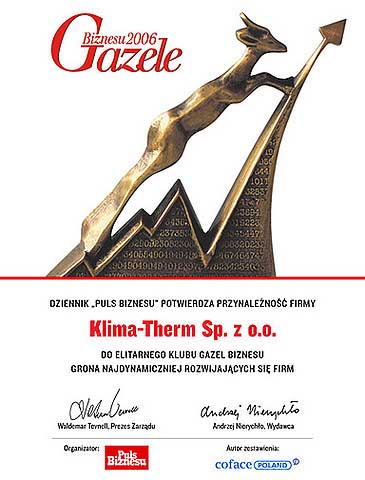 Klima-Therm Sp. z o.o. - the laureat of "Gazelles of Business 2006"