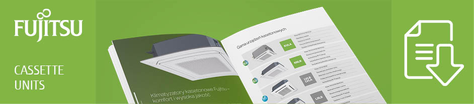 Specially prepared for end customers, a new brochure on cassette units has been added to the available selection of Fujitsu mini-folders. The key feature of this product series is the circumferential and wide air flow, which ensures comfortable air conditioning throughout the room. The units are perfect for banquet halls, conference rooms, restaurants and open space offices. In addition, the cassette units may be fitted with a white or black grille cover – in harmony with the interior design. The folder contains the full range of Fujitsu units available in 2020. The brochures also contain tables detailing technical parameters of the systems – covering as many as 50 devices.