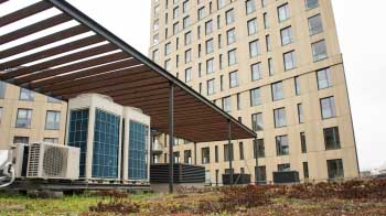 As a result of the work carried out, the building with a total usable area of more than 3,000 m2 has been divided into several functional zones, the largest of which is the part intended for exclusive hotel apartments located on the upper floors (floors 5 to 9). Floors 1 to 4 contain office premises with different leasable areas. The modernisation works also included the installation of a professional air conditioning system in the building. The project was carried out on the basis of Klima-Therm by Clint devices: CWW 902 series unit with RCW8142 dry-cooler, fan coil units (74 sets), condensing units servicing the coolers of the air handling units (3 sets), and Split type air conditioners by Fujitsu.