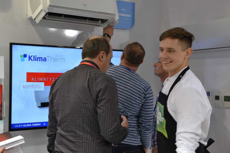 Wśród wystawionych nowości marki Fujitsu szczególnym zainteresowaniem odwiedzających cieszył się najnowszy, unikalny pod kątem designu oraz optymalizacji nawiewu powietrza klimatyzator ścienny Split Nocria X Dual Blaster. Uwagę zwracał również innowacyjny, energooszczędny system oparty na agregacie zewnętrznym VRF J-III L w połączeniu z panelem solarnym Solar Cool. Prezentacją produktową firmy Klima-Therm dopełniła gazowa pompa ciepła w wersji agregatu skraplającego japońskiej marki Yanmar eksponowana na Arenie Technologii.