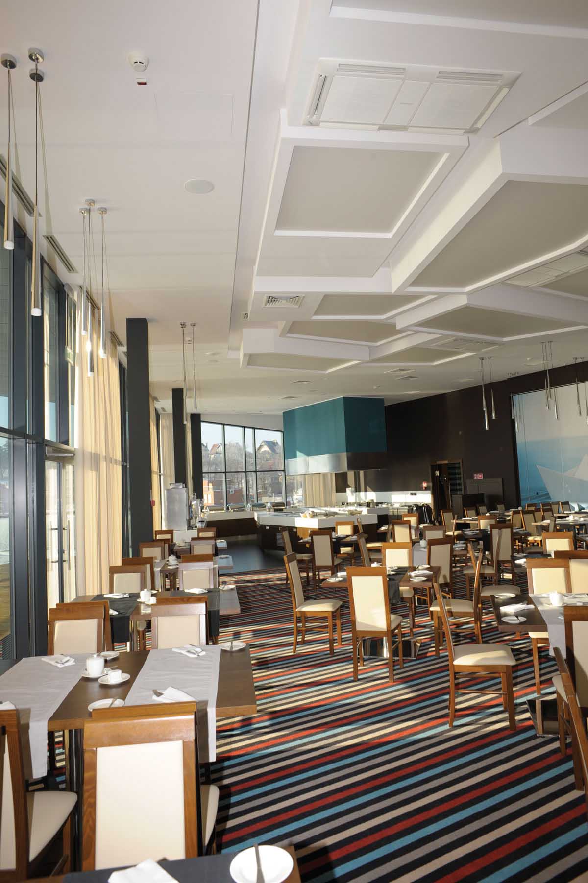 O komfort powietrza turystów goszczących w Hotelu Mikołajki dba system wody lodowej marki Klima-Therm by Clint. Na wdrożone rozwiązanie składa się 39 klimakonwektorów przystosowanych do pracy w trybie chłodzenia oraz grzania. Sterowanie klimatyzacją na terenie całego budynku odbywa się przy pomocy systemu BMS-ModBus.