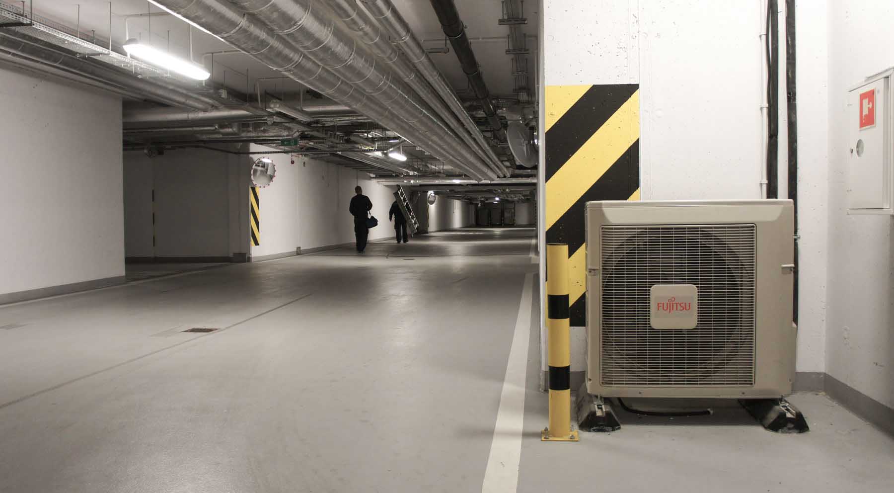Komfort mieszkania w Woronicza Qbik to także dostęp do umiejscowionych na parterze lokali handlowo-usługowych, które objęte zostały systemem klimatyzacji Fujitsu. Projekt instalacji klimatyzacji obejmuje 2 agregaty Fujitsu Airstage VRF Seria J, 9 agregatów VRF Seria V-II 12 oraz łącznie 40 parowników typu kasetonowego. Grupa Klima-Therm dostarczyła ponadto 4 agregaty Fujitsu (typ AJYA72LALH i AJYA90LALH) z przeznaczeniem do central wentylacyjnych. Sumaryczna moc chłodnicza i grzewcza zamontowanych na obiekcie systemów to odpowiednio 355 kW i 398 kW.