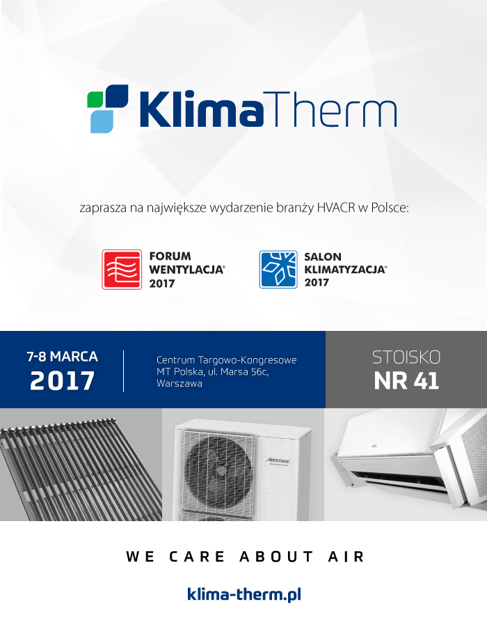 Klima-Therm weźmie udział w nadchodzącej, 15. edycji branżowej wystawy „Forum Wentylacja- Salon Klimatyzacja”, która odbędzie się 7 i 8 marca w Warszawie.